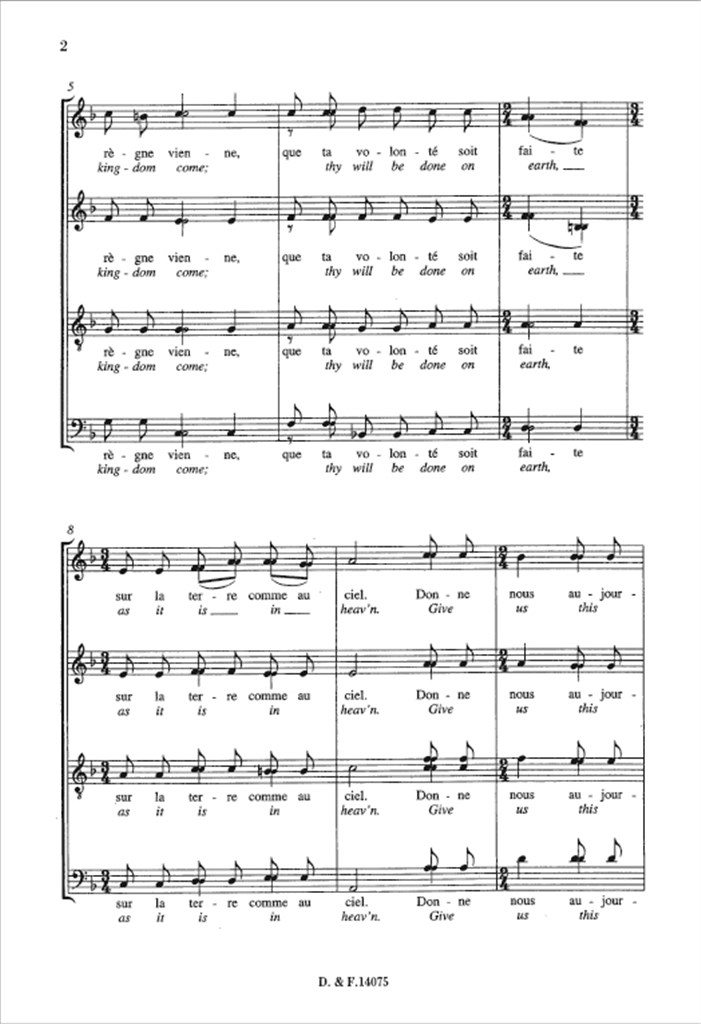 Maurice Durufle's Notre Pere (The Lord's Prayer) Op. 14 No. 4 for unaccompanied mixed chorus.