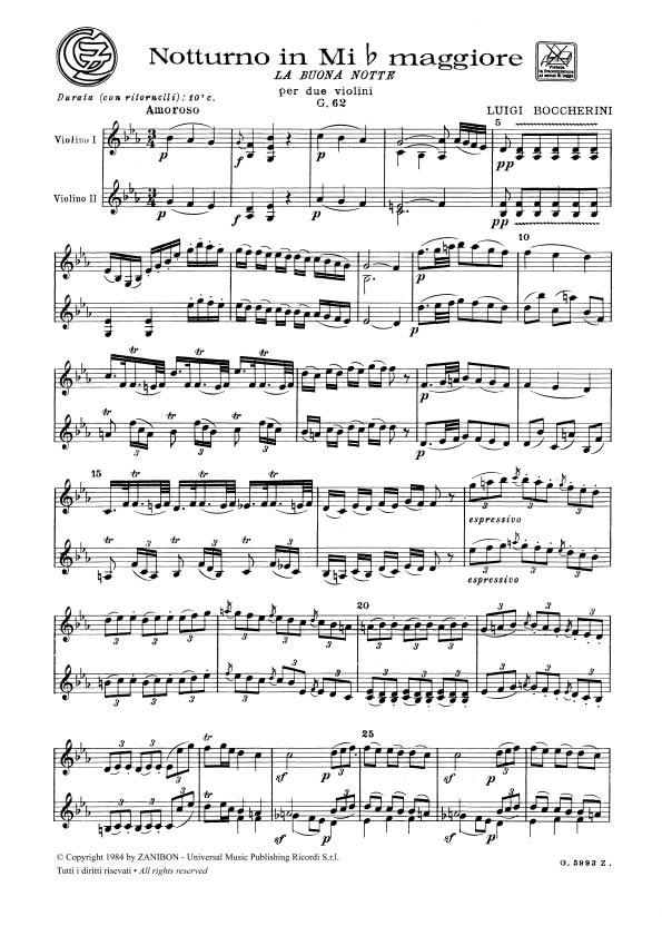 Notturno In Mi Bem. Maggiore (La Buona Notte) Per Due Violini BOCCHERINI LUIGI