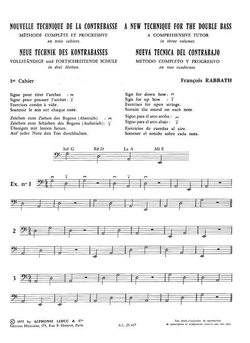 Nouvelle Technique De La Contrebasse – Livre Vol.1 RABBATH FRANCOIS
