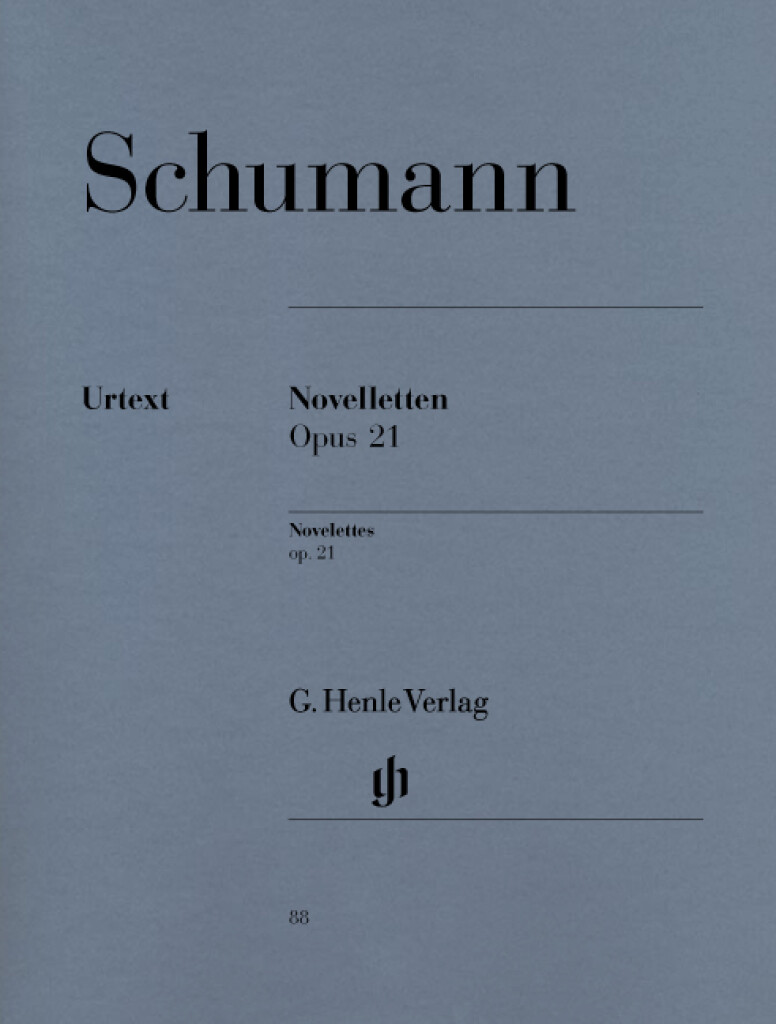 Les «Novellettes» ont été composées en même temps que les «Scènes d’enfants», avec lesquelles elles présentent une indéniable ressemblance de par leur climat général largement empreint de sérénité. Dans une lettre à Clara Wieck, Schumann écrit: «Ces trois dernières semaines, je t’ai composé aussi énormément de choses: pièces plaisantes, histoires d’Egmont, scènes familiales avec pères, un mariage, bref autant de pièces des plus aimables». Rien d’étonnant par conséquent à ce que l’oeuvre ait pris le rang de «bestseller» chez Henle! L’édition, soigneusement révisée, offre pour la première fois, en complément du texte musical revu et corrigé, une préface détaillée fournissant desinformations sur la genèse des «Novellettes» ainsi que des commentaires détaillés. ?
