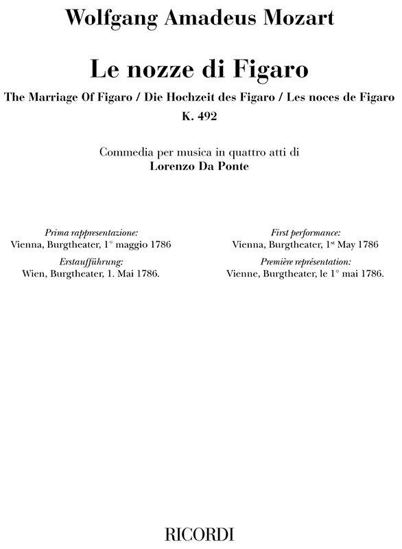 Nozze Di Figaro (Noces de Figaro) MOZART WOLFGANG AMADEUS