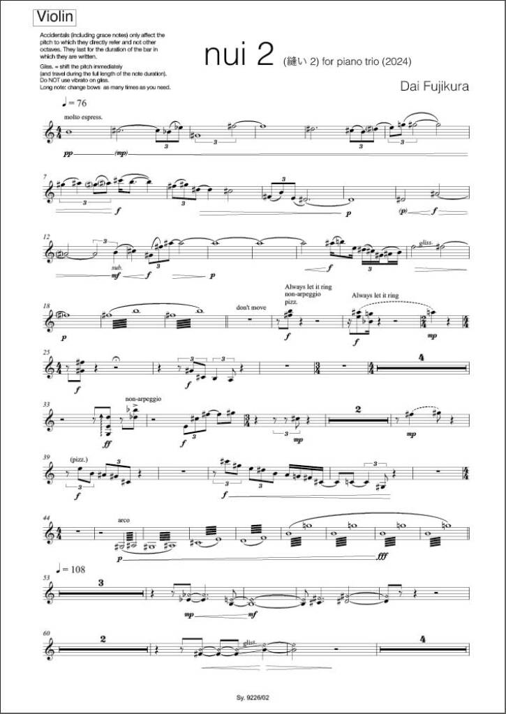 • Sous titre : violin, cello and piano (2024)