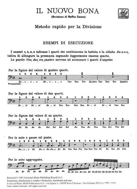 Nuovo Bona Metodo Rapido Per La Divisione In Chiave Di Basso BONA PASQUALE