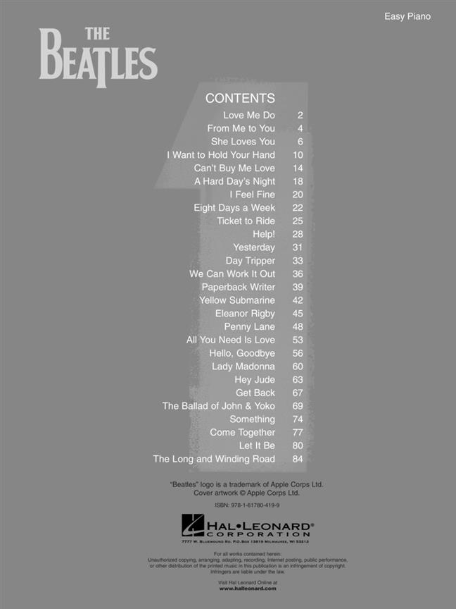 La compilation des Fab Four enfin disponible en version piano débutant.
