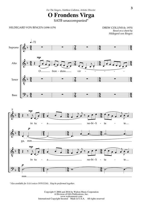 For more ambitious choirs who would like to emulate the sound of Anonymous 4, this piece uses chant-like singing and beautiful polyphonic Vocal writing that emphasizes the purity of the voice through the evocative Latin text by Hildegard von Bingen.