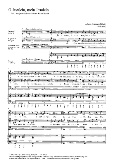 O Jesulein, Mein Jesulein SCHEIN JOHANN HERMANN