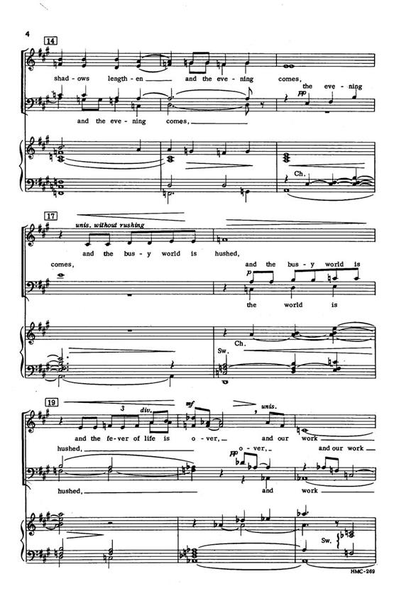 Une mise en musique belle et maîtrisée des mots familiers du Livre de la prière commune, pas difficile, mais qui nécessite une attention particulière aux détails.