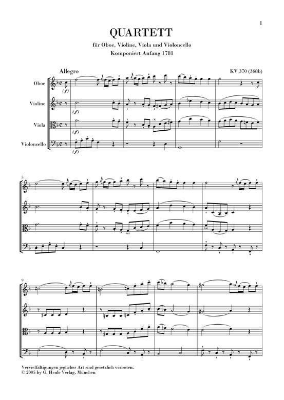 Oboe Quartet F Major K. 370 (368B) MOZART WOLFGANG AMADEUS
