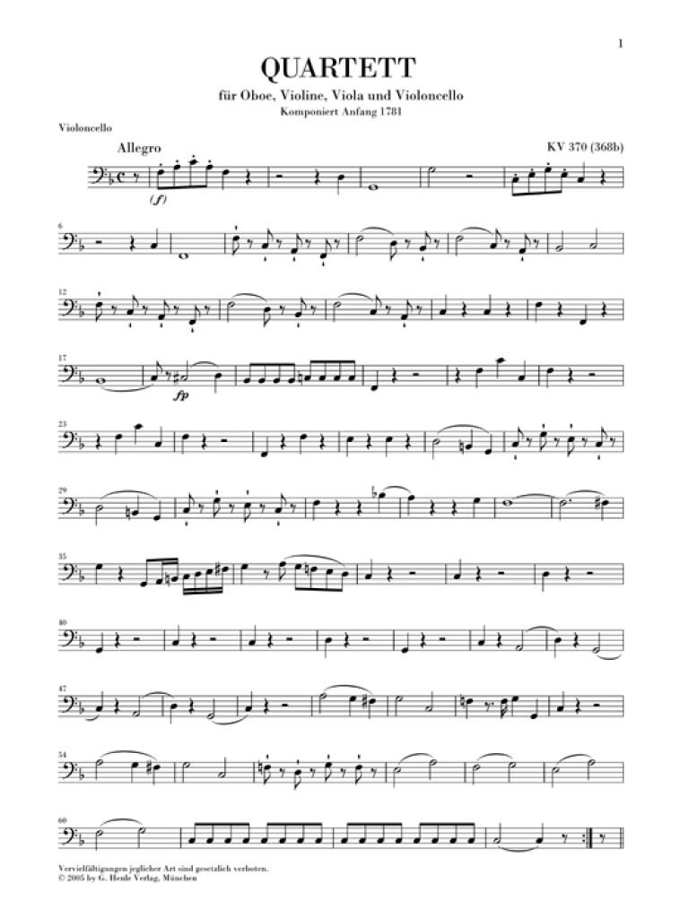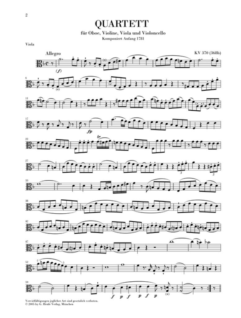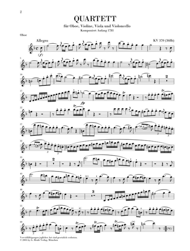 Oboe Quartet In F Major K. 370 (368B) MOZART WOLFGANG AMADEUS