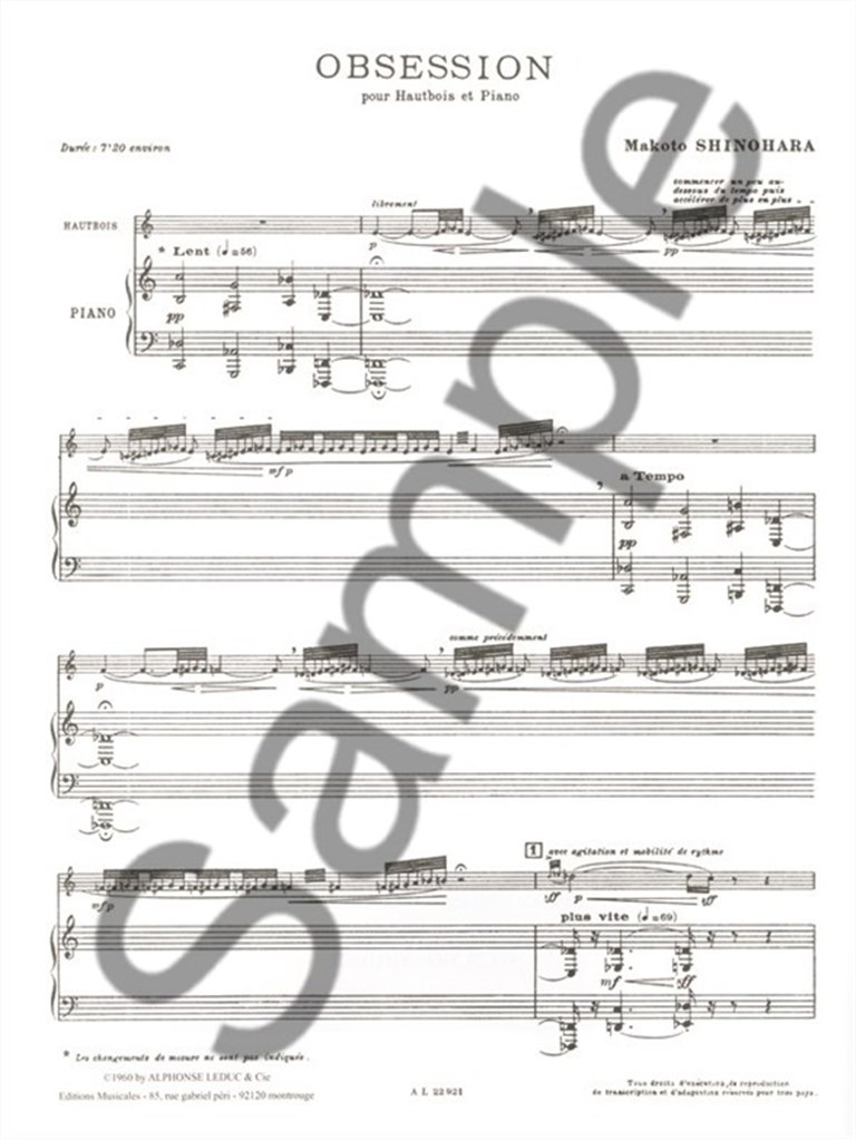 Japanese born Makoto Shinohara was born in 1931. He studied at the Tokyo University of Arts before moving to the Paris Conservatoire. His passion is for electronic music, but his catalogue is varied and includes the sublime Obsession for Oboe and Piano. Composed in 1960, Shinohara had just completed his studies at the Paris Conservatoire under Olivier Messiaen and other experimental composers. Obsession exploits the Oboe and Piano through riveting uses of tonality, rhythm, dynamics, tempo, articulation and shared melody. For all advanced oboists seeking to include a challenging yet excitingly unique contemporary work in their repertoire, Shinohara 's Obsession suitably fitsthe bill!