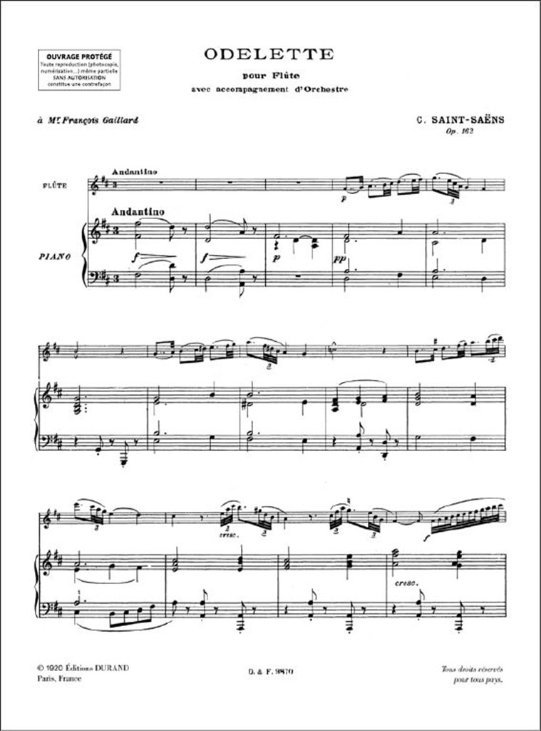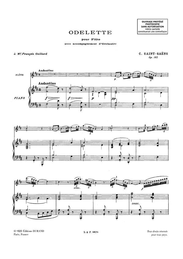 Odelette Op. 162 Fl/Piano SAINT-SAENS CAMILLE