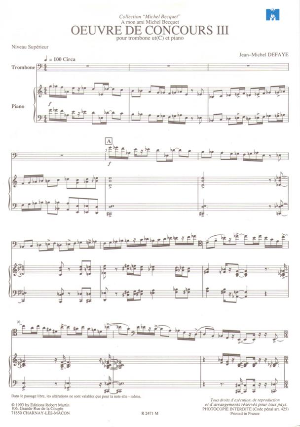Oeuvre De Concours III DEFAYE JEAN-MICHEL