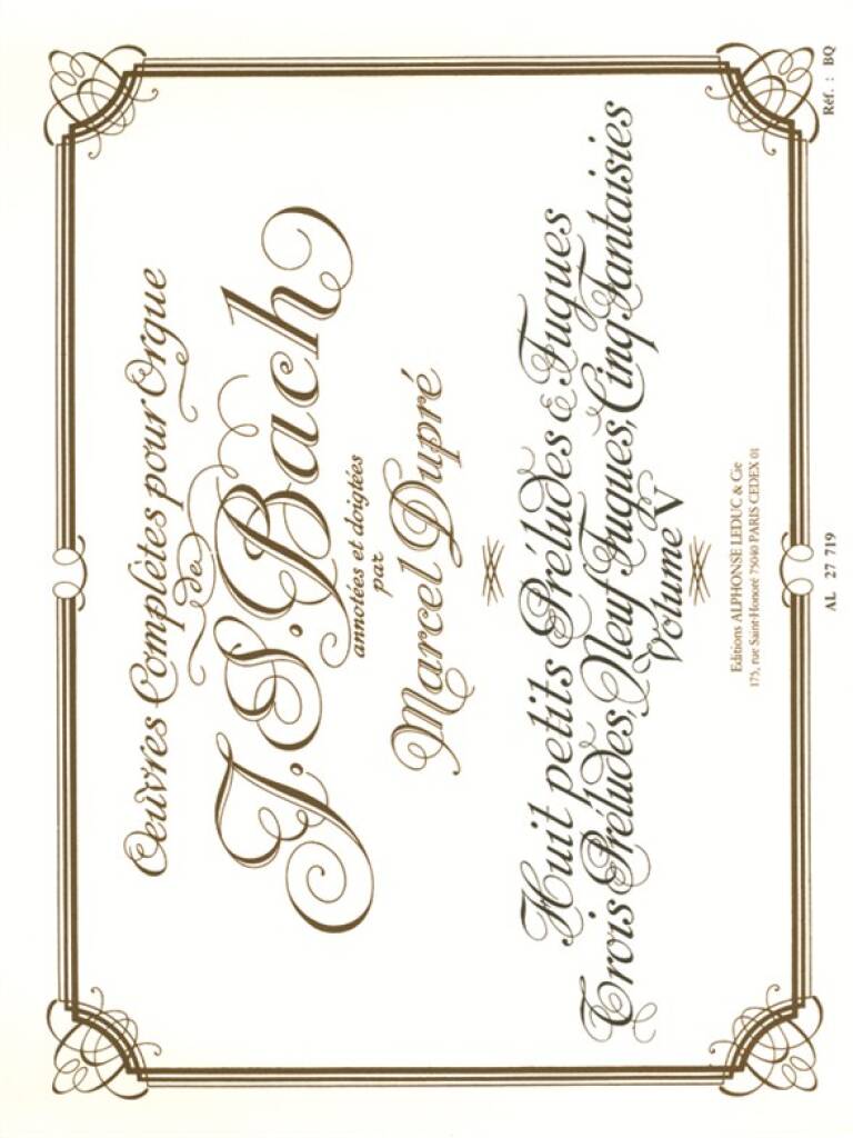 Oeuvres Completes Pour Orgue Vol 05/8 Pts Prel Fgue/3 Prel/9 Fgue/5 Ftsie/Orgue BACH JOHANN SEBASTIAN / DUPRE