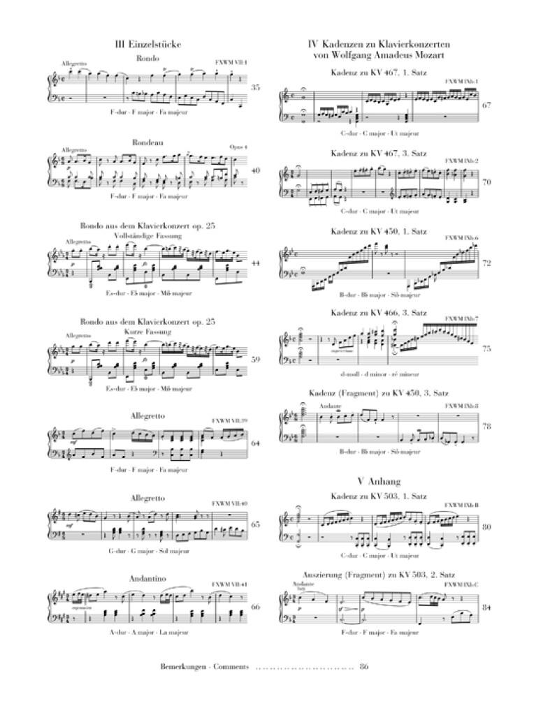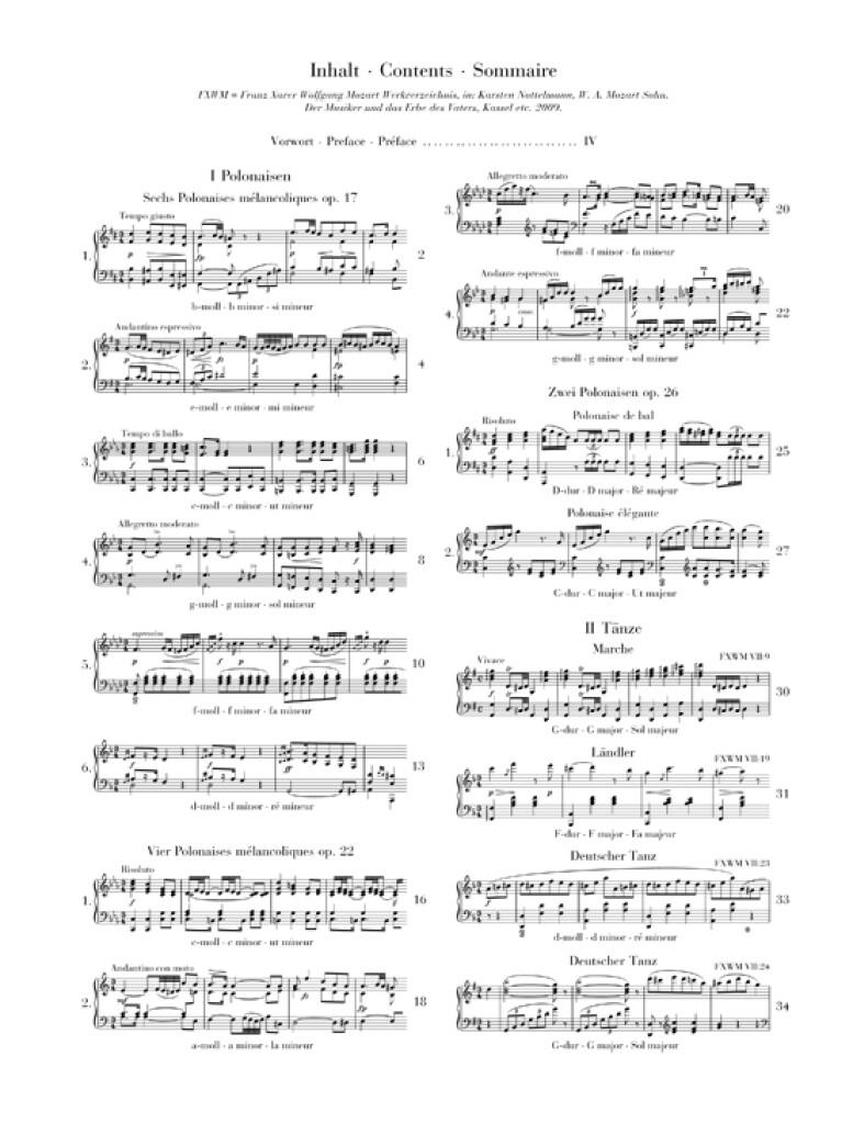 Déjà le premier volume de la très originale musique pour piano du fils cadet de Mozart fit dresser l'oreille des mélomanes. Grâce à ce deuxième volume, nous sommes en mesure de compléter la collection par d'autres oeuvres de ce compositeur souvent sous-estimé. Voici ce qu'on pouvait lire à son époque au sujet de Franz Xaver Mozart: "Son jeu est limpide, précis, expressif, plein d'esprit et animé de sentiments" - contrairement aux "chevaliers du clavier", tels Moscheles ou Hummel, il ne plaçait pas la virtuosité au premier plan, ce qui rend ses oeuvres attractives pour le musicien amateur. À côté d'un grand nombre de pièces isolées, le volume contient plusieurs cadences de F. X. Mozart écrites à l'attention des concertos de son célèbre père, et qui ont pu être éditées ici pour la première fois grâce aux autographes.