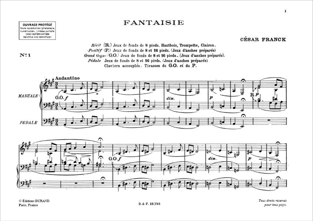 Oeuvres D’Orgue V3 (Fantaisie/Cantabile/Piece Heroique) Orig FRANCK CESAR