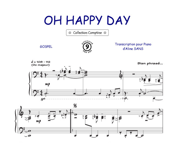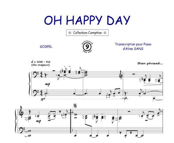 Oh Happy days - (Collection Comptine) Arrangement Piano - 2 + feuillet pour paroles - niveau : Difficile
