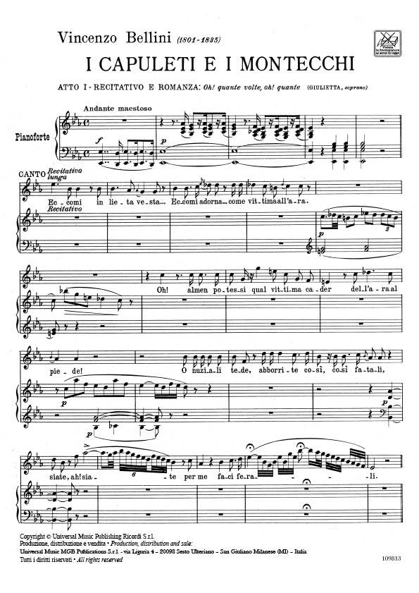 Oh! Quante Volte Oh! Quante Dall’Opera I Capuleti E I Montecchi BELLINI VINCENZO