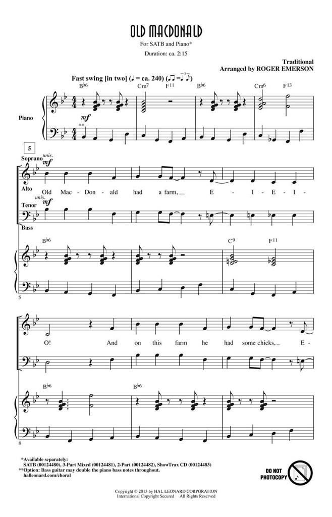 Ce favori d’enfance offre une vitrine de jazz vocal excitante et super rapide pour les jeunes chorales. Inspirées par Ella Fitzgerald, les lignes vocales sont faciles, ce qui en fait un excellent moyen de développer l’intonation et le style jazz. Amusez-vous! Disponible séparément : SATB, mixé en 3 parties, en 2 parties, CD ShowTrax. Durée : environ 2:15.