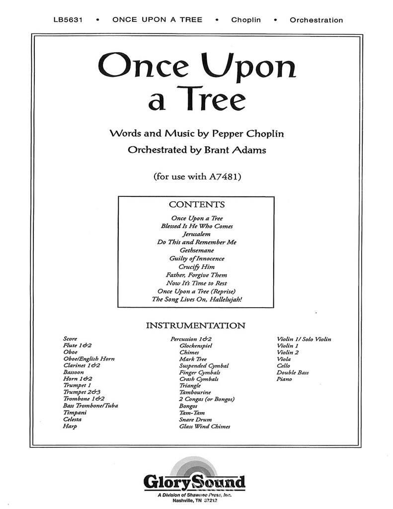 La comédie musicale est narrée par Luc alors qu’il écrit sur les derniers jours de Jésus sur terre. Très efficace lorsqu’elle est présentée par la chorale et le narrateur, mais naturellement adaptée à une mise en scène complète. Elle peut être jouée dans son intégralité, ou en segments lors de plusieurs services. Les paroles et la musique de cette nouvelle cantate de Pepper Choplin sont très dynamiques et plongeront le public dans la passion et l’intensité des grands événements de la Semaine Sainte. Comme le personnage de Luke est profondément touché par l’histoire qu’il enregistre, le chœur et les solistes prennent son rôle dans le drame. Once Upon a Tree a été écrite pour l’église de Pepper, la Greystone Baptist Church, à Raleigh, en Caroline du Nord. La chorale répétait que l’écriture musicale était en cours d’écriture et jouait un rôle particulier lors de la formation et de la perfection de l’œuvre. Ce sera une expérience profondément émouvante pour les chorales et les congrégations.