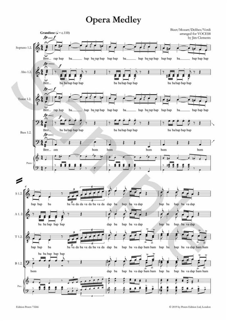 This is one of VOCES8’s earliest arrangements by Jim Clements and was first performed at London’s Royal Opera House. Many well-loved tunes from famous operas appear in this 4-minute piece and there is plenty of opportunity to bring them to life on stage, unleashing the singer's inner diva!