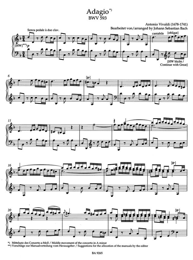Johann Sebastian Bach: Jesu, meine Freude BWV 227 and 1105 / Adagio in D minor BWV 593 / Nun danket alle Gott (from Cantata BWV 79) / Sonatina BWV 106 / Sarabande in D minor BWV 812 / Herzlich lieb hab ich dich, o Herr BWV 1115 / Agnus Dei (from the Mass in B minor BWV 232) / Air BWV 1068 / Sicilienne in G minor BWV 1031 / Twelve selected pieces in settings by Johann Sebastian Bach / Works by Johann Adolf Hasse, Friedrich Wilhelm Marpurg (three chorale preludes), Georg Michael Telemann (two chorale preludes), Johann Christian Heinrich Rinck (Nun danket alle Gott), Joseph Gustav Merkel, Gabriel Rheinberger (Fugue in C major from the "Skizzen"), Heinrich von Herzogenberg, Arnold Mendelssohn, Otto Besch (Praeludium- first publication), Wilhelm Wapenhensch (Variations on "Befiehl du deine Wege"- first publication)