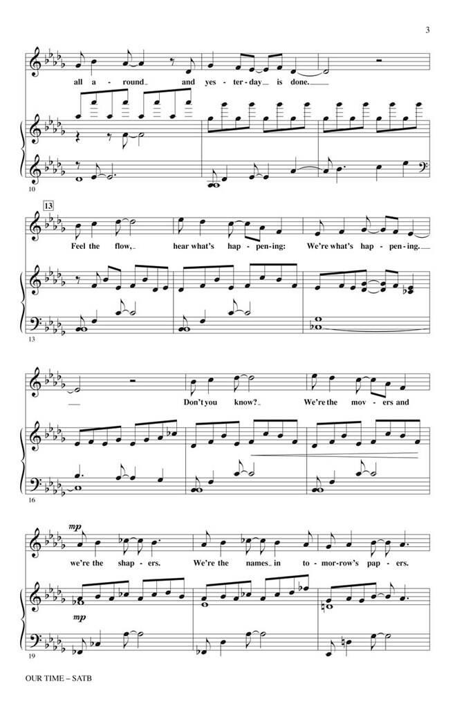 Célébrez la promesse de l’avenir dans cette chanson de 1981 tirée de Merrily We Roll Along de Stephen Sondheim. Une superbe cérémonie de remise de diplômes ou de concert de printemps, vous serez inspiré par le message sincère : « C’est notre heure, respirez-le : des mondes à changer et des mondes à gagner. À notre tour arrive, Toi et moi, mon pote, Toi et moi. » Disponible séparément : SATB, SAB, SSA, ShowTrax CD. Parties instrumentales disponibles en numérique (cl 1-2, ob, tpt 1-2, tbn1-2, syn, b, dm). Durée : environ 4:20.
