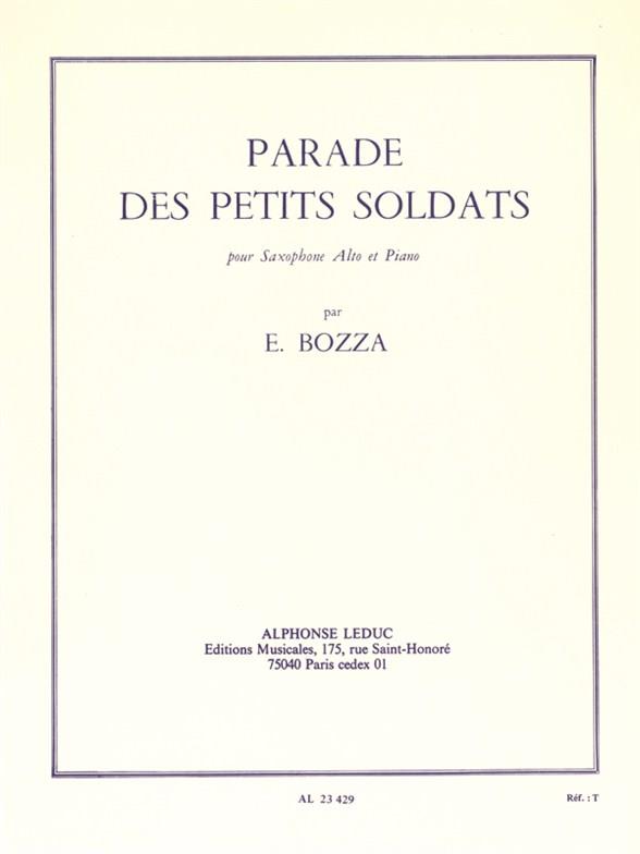 To this day, Eugène Bozza (1905-1991) remains one of the most prolific composers for wind instruments, despite being a violinist himself. His Parade Des Petits Soldats for Alto Saxophone and Piano is no exception to the composer's success. During his studies at the Paris Conservatoire, Bozza won prizes for Violin, conducting and composition, as well as the Grand Prix de Rome. He then conducted the orchestra of the Opera-Comique and became Head of the Conservatoire in Valenciennes, whilst remaining a prominent composer. Composed in 1964, Bozza 's Parade Des PetitsSoldats for Alto Saxophone and Piano is a delightful work for beginner to intermediate saxophonists, addressing a variety of features. As music educationalist, Paul Griffiths has written of Bozza 's compositions, 'his works reveal melodic fluency, elegance of structure and a consistenly sensitive concern of instrumental capabilities. '
