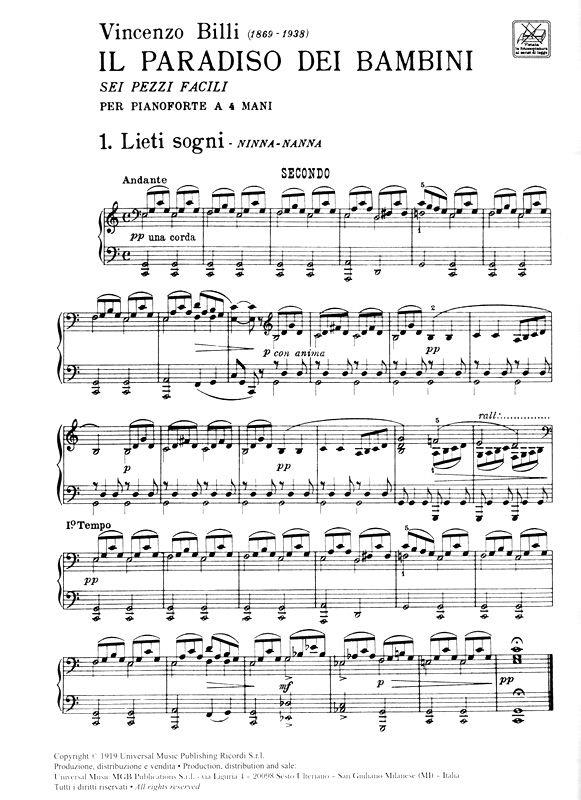 Paradiso Dei Bambini 6 Pezzi Facili Su 5 Note Per Pianoforte A 4 Mani BILLI VINCENZO