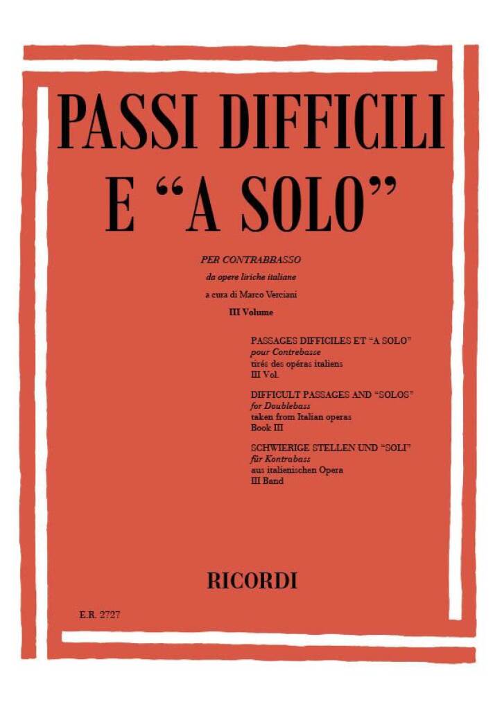 Passi Difficili E ‘A Solo’ Da Opere Liriche Italiane Per Contrabbasso – Vol.III