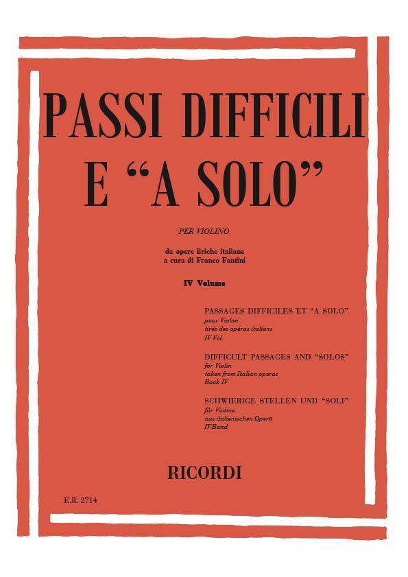 Passi Difficili E ‘A Solo’ Da Opere Liriche Italiane Per Vl. Vol.IV FANTINI F.