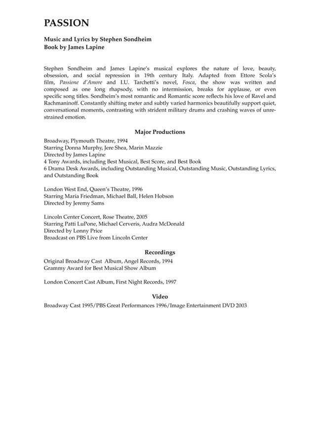 Passion – Vocal Selections – Revised Edition SONDHEIM STEPHEN