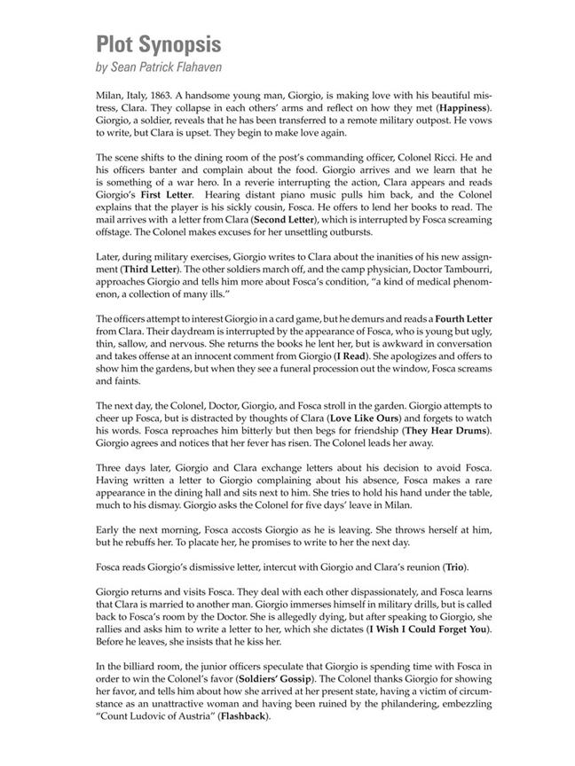 Cette sélection de chansons de la comédie musicale primée aux Tony Awards de Stephen Sondheim est nouvellement éditée, avec de nouvelles gravures, des chansons ajoutées et des articles. Comprend deux versions de Personne Ne M’a Jamais Aimé, à la fois la version de la série et la version originale. Inclut des lignes vocales pour Clara et Giorgio lorsque cela est nécessaire.