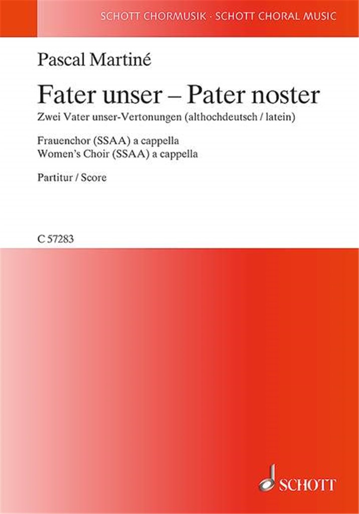 Au-dessus de la prière centrale du christianisme, la composition, avec ses sons denses et ses couleurs atmosphériques, développe une ambiance d’admiration profonde et de force contenue. Une composition expressive de notre nouveau compositeur Pascal Martiné - personnellement recommandée par les éditeurs de votre département choral !