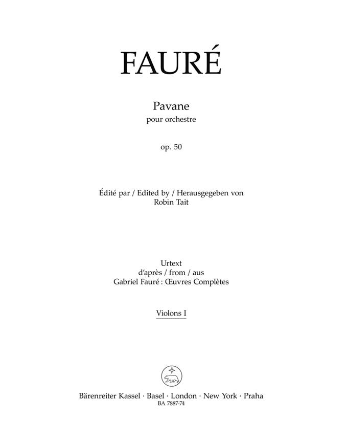 Bärenreiter's new scholarly-critical edition of Gabriel Fauré's evergreen, the Pavane op. 50, has been edited by Robin Tait as part of the "Complete Works of Gabriel Fauré”.