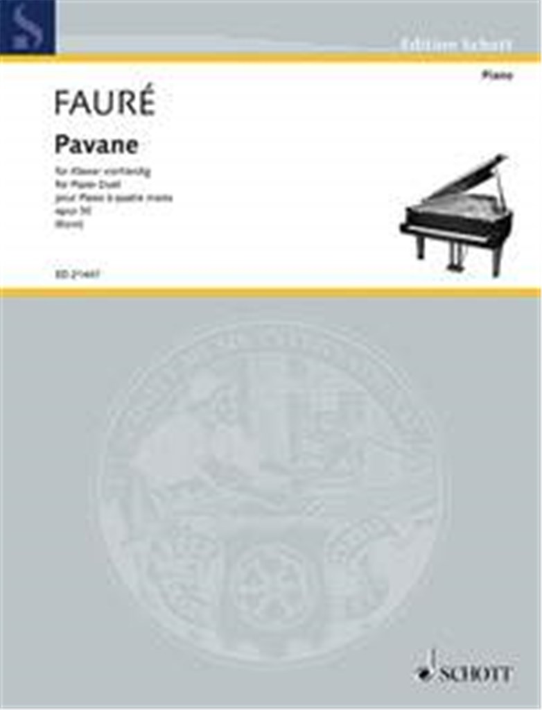 La musique de petites formes devrait être au centre du compositeur français Gabriel Fauré (1845-1924). Le professeur de Camille Saint-Saëns a pris après des années dans la "province" en 1874, un poste d'organiste à Paris, et plus tard comme une caractéristique de musicien d'église ou par des activités éducatives. À l'été de 1887, Fauré écrivit sa Pavane Opus 50, à l'origine destiné à un concert avec le divertissement léger. Ils ont gagné rapidement en popularité comme une version orchestrale avec et sans la valeur ajoutée par Fauré choeur ajouté. Le romantique, la mélodie un peu mélancolique est une mélodie accrocheuse, qui peut maintenant également jouer de la musique à quatre mains au piano à l'arrangement actuel.