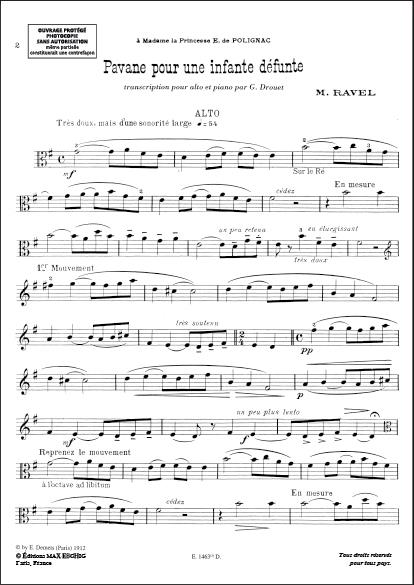 Pavane Pour Une Infante Defunte Alto/Piano RAVEL MAURICE