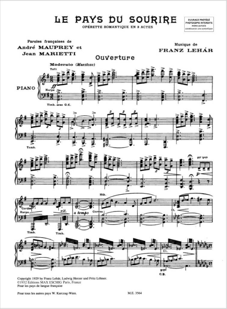 Pays Du Sourire Chant/Piano LEHAR FRANZ