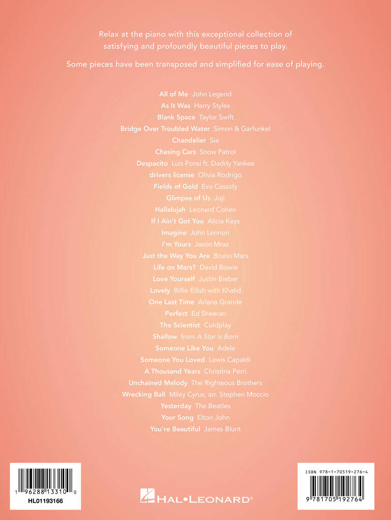 All Of Me As It Was Blank Space Bridge Over Troubled Water Chandelier Chasing Cars Despacito Drivers License Fields Of Gold Glimpse Of Us Hallelujah I’m Yours If I Ain’t Got You Imagine Just The Way You Are Life On Mars Love Yourself Lovely One Last Time Perfect The Scientist Shallow Someone Like You Someone […]