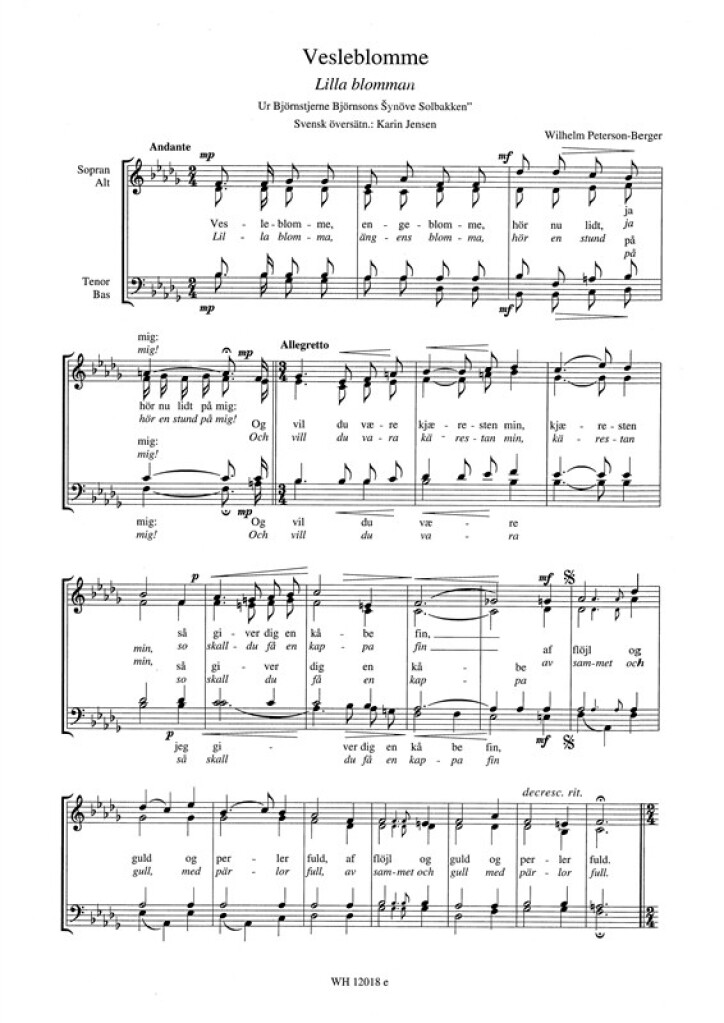 Peterson-Berger 8 Sanger For Blandad Kor Op. 11 Vocal Score PETERSON OSCAR
