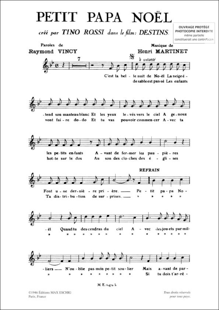 Petit Papa Noel Chant/Piano (Paroles De Raymond Vincy MARTINET JEAN-LOUIS