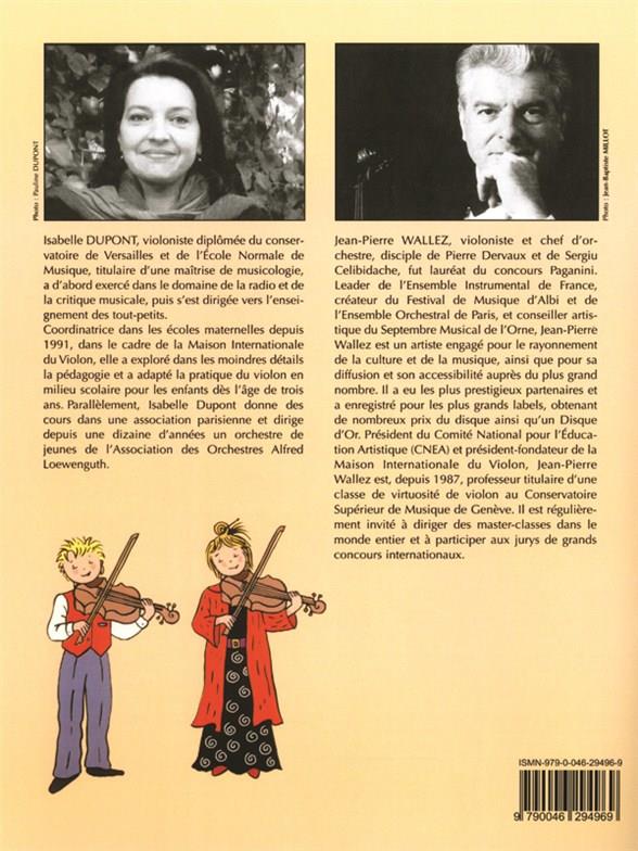 Petit Violon Voyage Au Pays Des Comptines by Isabelle Dupont and Jean-Pierre Wallez is the first volume of a series for young violinists. Easy to play and with many illustrations, this book can be used by children from 3 years old. Really pedagogic, it introduces young children to all aspects of the Violin, including the different physical parts of the instrument, the basics of the theory such as scales, the different note. Being very attractive and colourful, this method is a must-have for future young violinists. Note: this book is written in French. Isabelle Dupont and Jean-Pierre Wallez are both professional violinists. Isabelle Dupont has used her experience working with young children in nursery and primary school.
