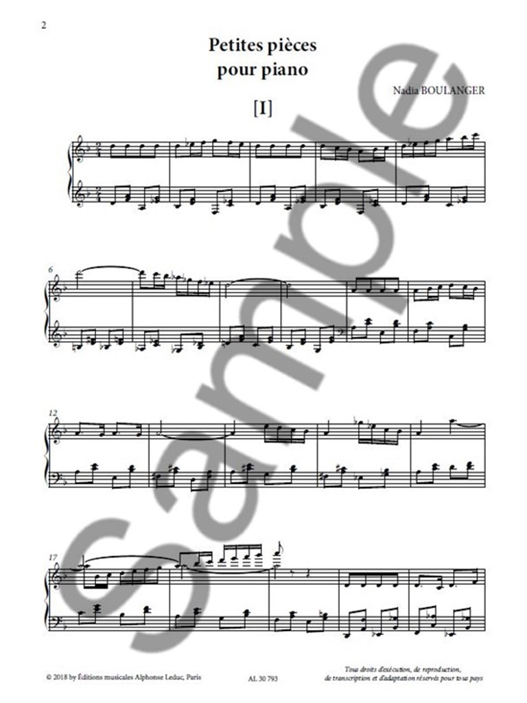 June 1914. Nadia Boulanger is at the height of her composing career, which she pursues alongside her other musical activities - concert performance and teaching - though only a few years later, she will deliberately give it up. Right now, however, she has gone to meet her sister Lili in Rome, where the two young musicians, united by a deep affection, will put their study trip to good use in the gentle Italian spring. Dated June 5th, these Little Piano Pieces shine with a lighthearted charm - and that's not the least of their appeal. These three sparkling miniatures, published here for the rst time, will delight all pianists curious to explore this little-known repertoire.