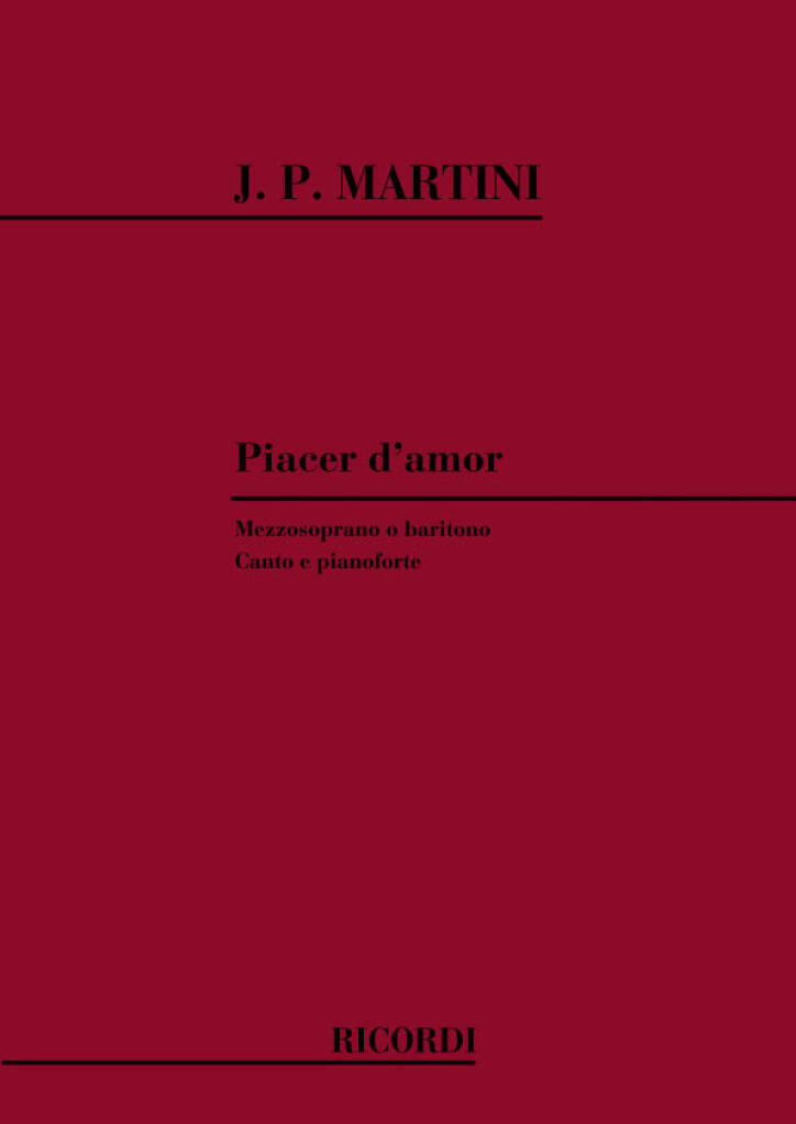 Piacer D’Amor Per Canto E Pianoforte (Mezzosoprano O Baritono) MARTINI JEAN-PAUL