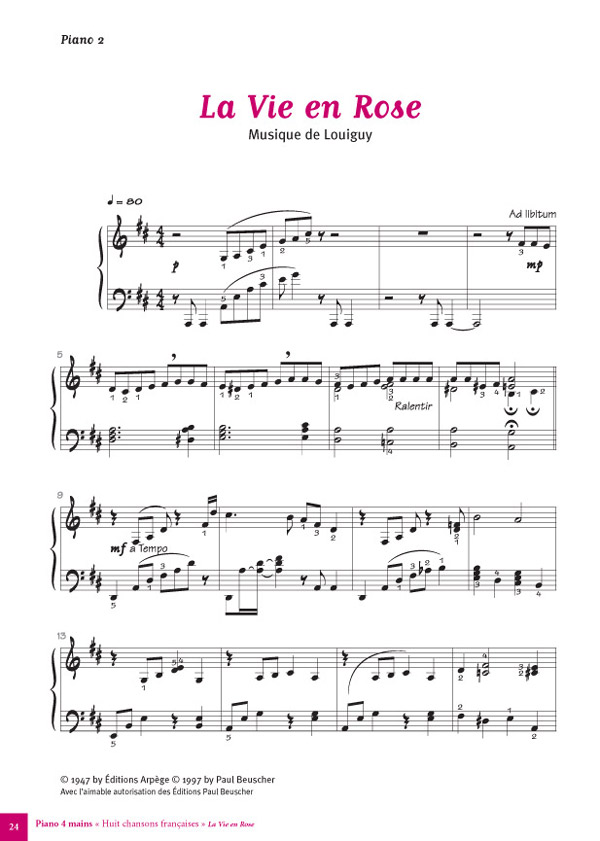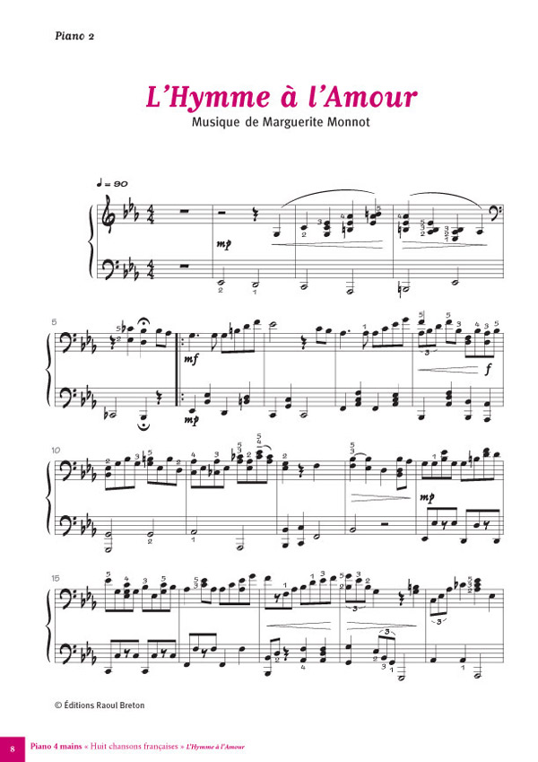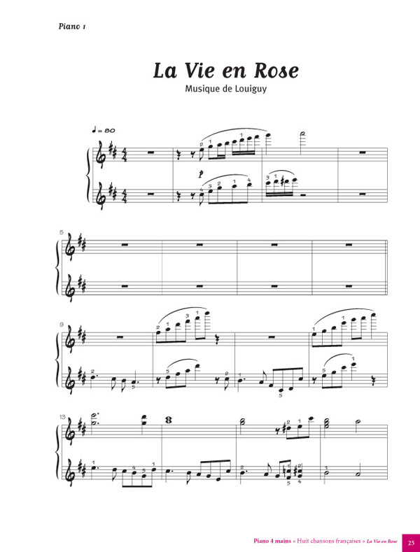 Piano 4 Mains 8 Chansons Francaises LAFITTE JORDANNE