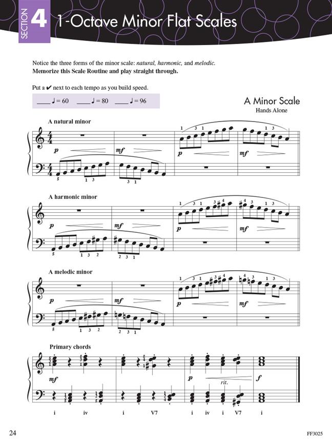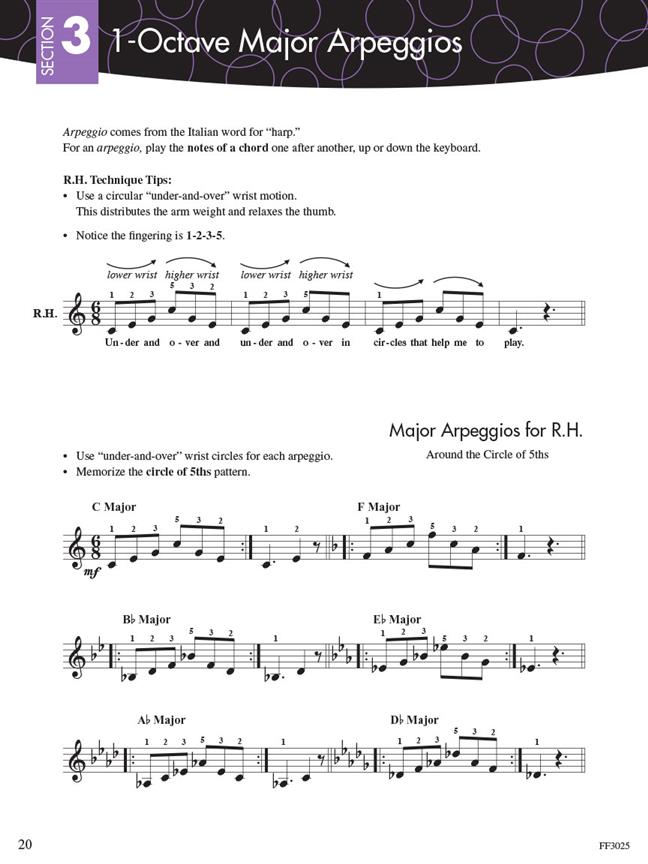 Intermediate students are ready to explore the challenges of one-octave scales and arpeggios. More than a simple reference to scale fingerings and key signatures, this book presents valuable patterns that engage the ear and give musical meaning to scale degrees. By transposing these patterns and common chord progressions, students gain deep understanding in all keys. With additional strategies for fluency and gesture, students are well-prepared for technical mastery.