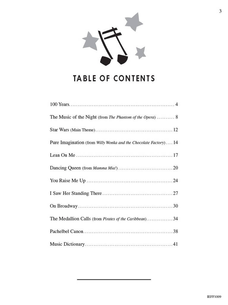 Une collection palpitante de hits adaptée au niveau : Harry Potter, Disney, Pirates of the Caribbean, Phantom of the Opera, et bien d'autres.