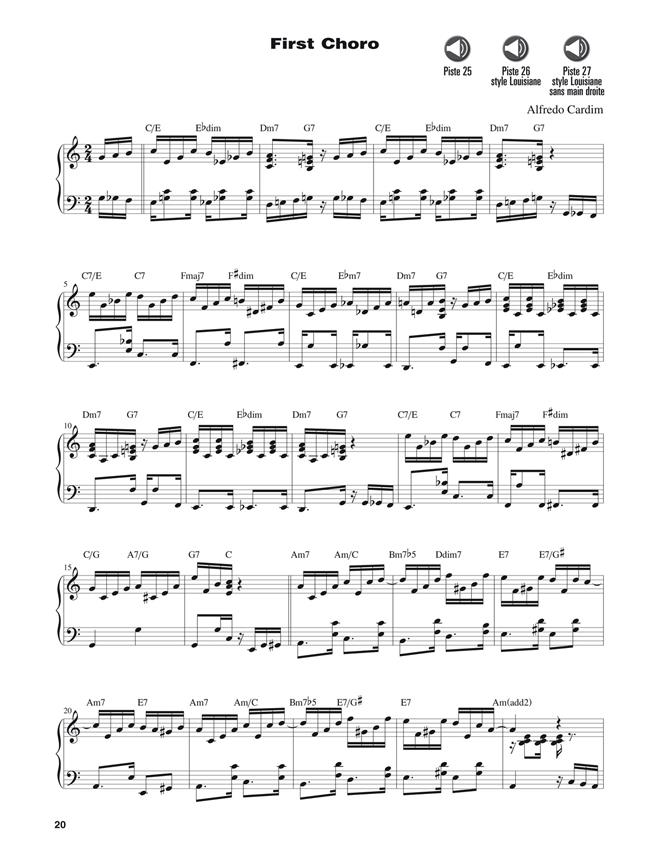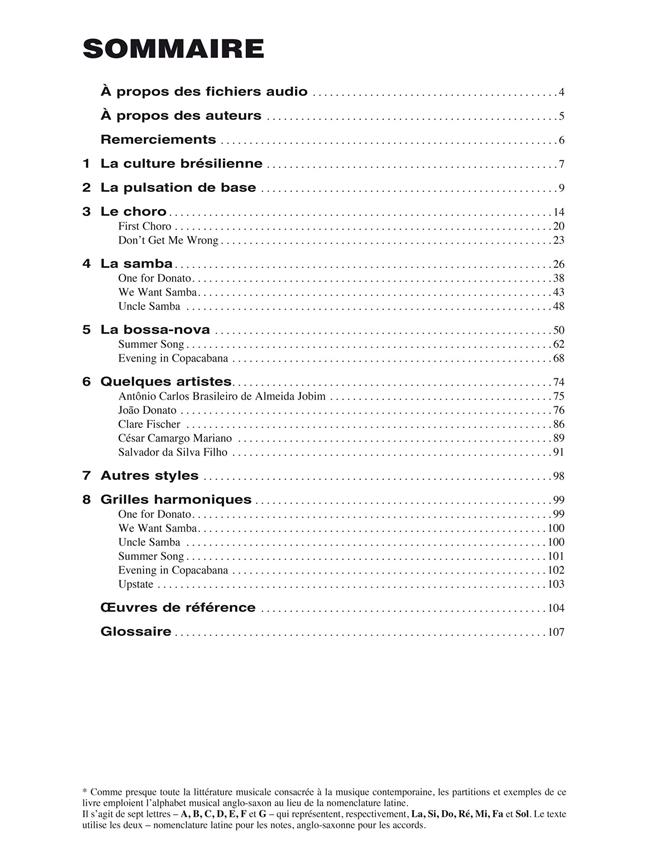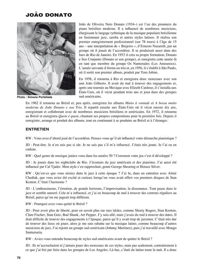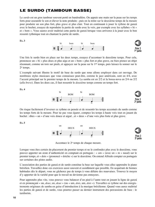 La méthode Piano brésilien enseigne les bases des styles musicaux brésiliens parmi les plus attrayants : le choro, la samba et la bossa-nova. Elle débute par le travail des rythmes pour développer le groove fondamental de la musique brésilienne. Ensuite, de nombreux exemples permettent d'accumuler le vocabulaire rythmique et harmonique essentiel à l'interprétation des morceaux sélectionnés. Les fichiers audio, qui peuvent être téléchargés ou écoutés en streaming, comprennent non seulement des enregistrements de tous les exemples, mais aussi des morceaux en groupe permettant d'improviser sur le chorus, et des pistes de play-back pour jouer en solo avec une section rythmique. Enfin, vous trouverez ici des entretiens avec des artistes.