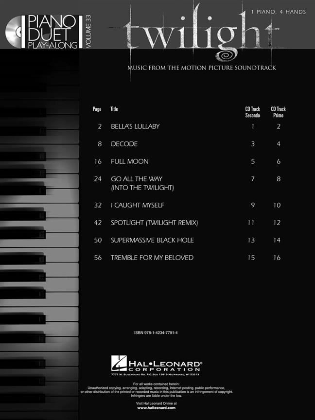 Piano Duet Play Along Vol.33 Twilight