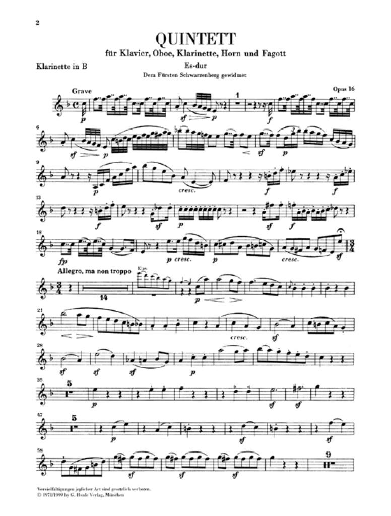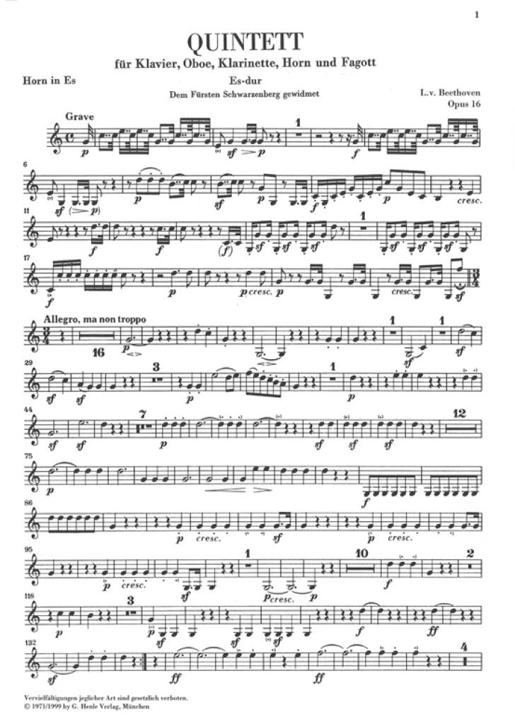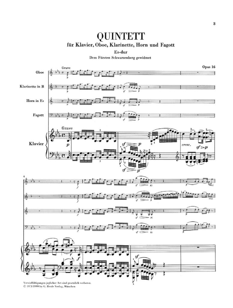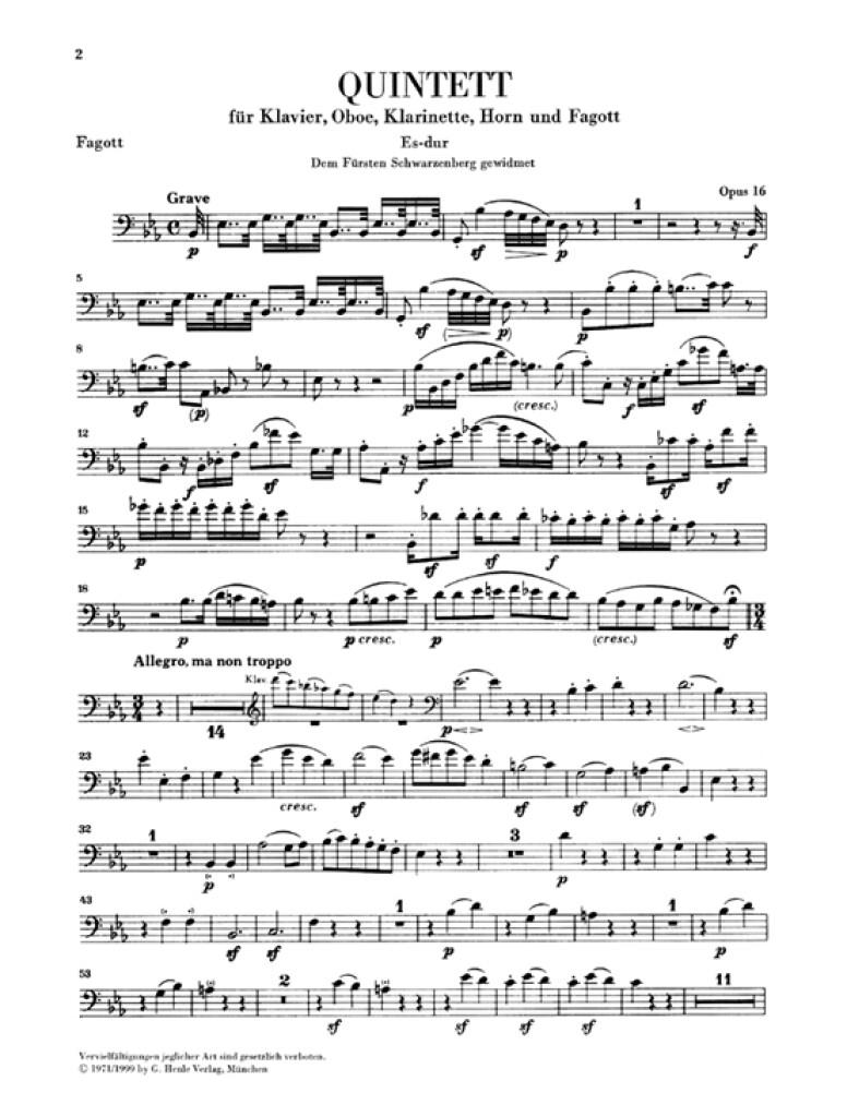 Piano Quintet E flat major op. 16 (Version for Wind Instruments) for Piano, Oboe, Clarinet, Horn and Bassoon