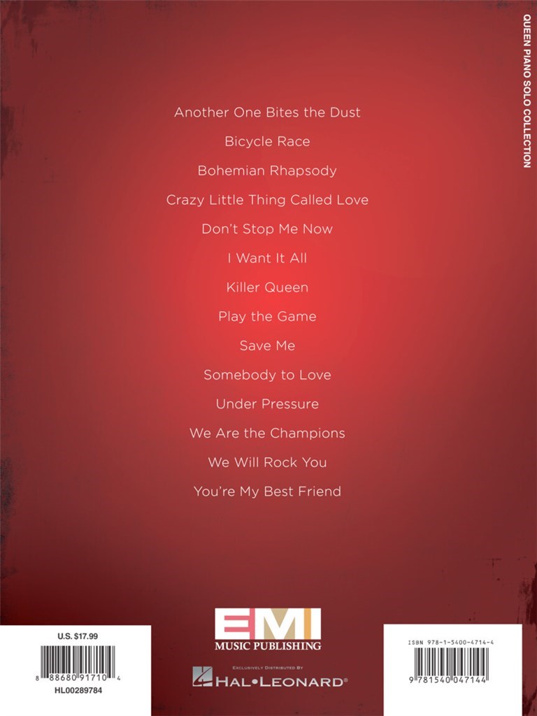 Retrouvez 14 des meilleurs chansons de Queen, arrangées astucieusement pour piano solo : Another One Bites the Dust - Bicycle Race - Bohemian Rhapsody - Crazy Little Thing Called Love - Don't Stop Me Now - I Want It All - Killer Queen - Play the Game - Save Me - Somebody to Love - Under Pressure - We Are the Champions - We Will Rock You - You're My Best Friend .